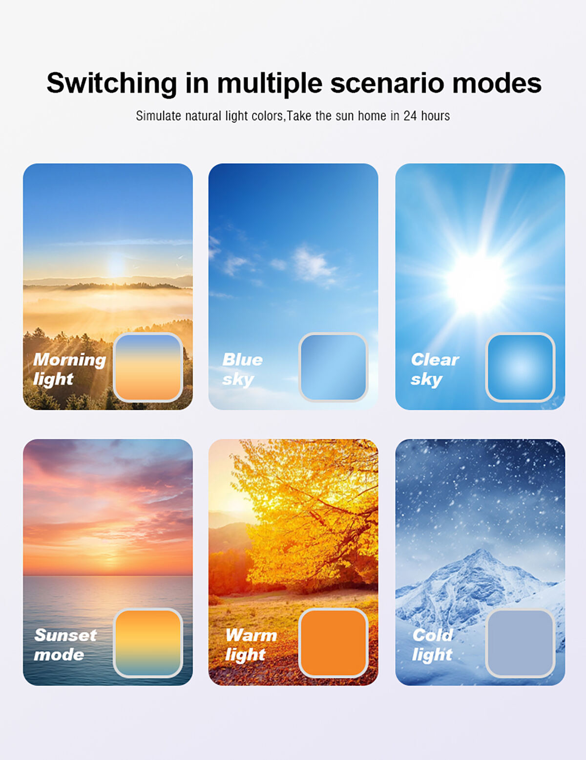 Smart lightscapes change with your heart. Switch with the app or remote control, bringing the natural spectrum of sunrise and sunset into your room.